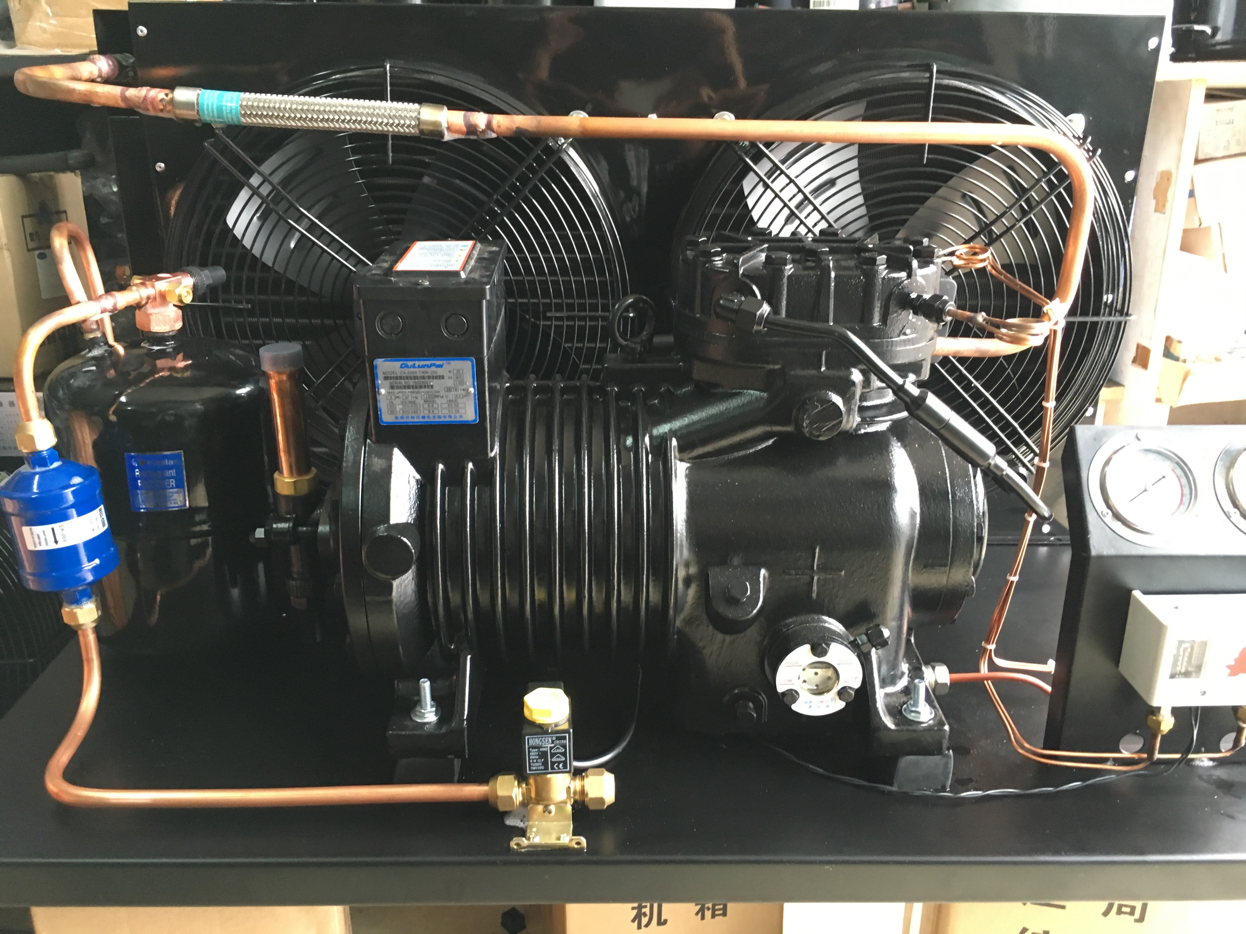 組裝形式:單個壓縮機、冷凝器,儲液器,油分離器集成在一個相對封閉箱式空間內(nèi),有