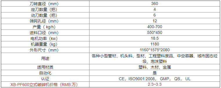 | XB-PF600立式破碎機(jī)價(jià)格(RMB:萬) | 歡迎來電咨詢 |