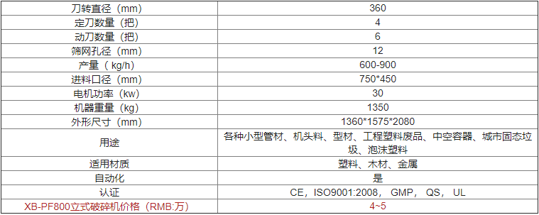 | XB-PF800立式破碎機(jī)價(jià)格(RMB:萬(wàn)) | 歡迎來(lái)電咨詢 |