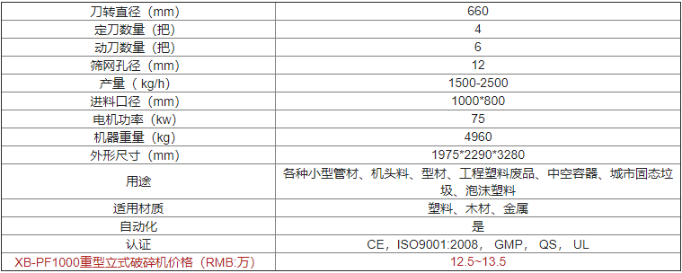 | XB-PF1000重型立式破碎機(jī)價(jià)格(RMB:萬) | 歡迎來電咨詢 |