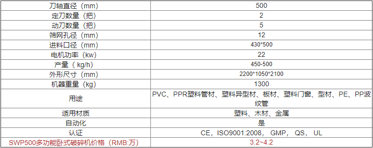 | SWP500多功能臥式破碎機(jī)價格(RMB:萬) | 歡迎來電咨詢 |