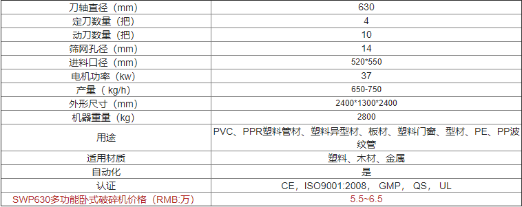 | SWP630多功能臥式破碎機(jī)價格(RMB:萬) | 歡迎來電咨詢 |