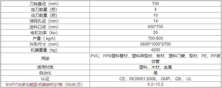 | SWP730多功能臥式破碎機(jī)價(jià)格(RMB:萬) | 歡迎來電咨詢 |