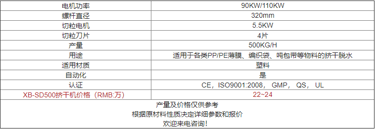 | XB-SD500擠干機價格(RMB:萬) | 歡迎來電咨詢 |