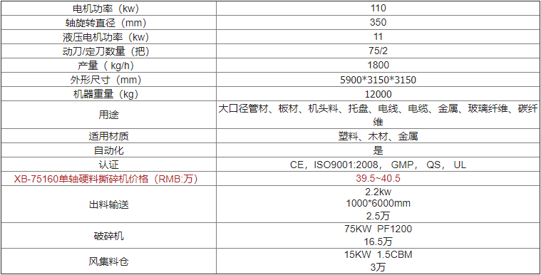 | XB-75160單軸硬料撕碎機價格(RMB:萬) | 歡迎來電咨詢 |