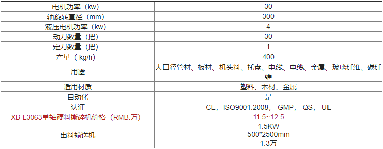 | XB-L3063單軸軟料撕碎機價格(RMB:萬) | 歡迎來電咨詢 |