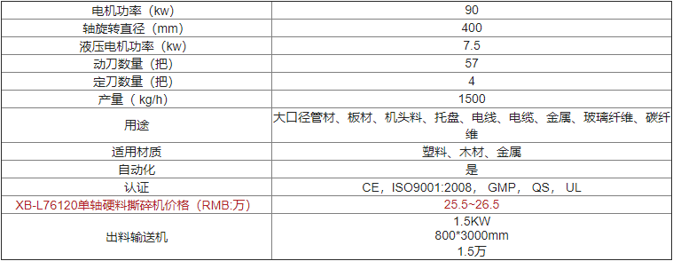 | XB-L76120單軸軟料撕碎機價格(RMB:萬) | 歡迎來電咨詢 |