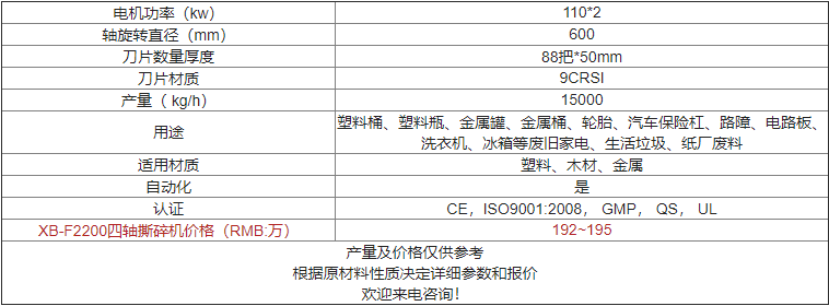 | XB-F2200四軸撕碎機(jī)價格(RMB:萬) | 歡迎來電咨詢 |